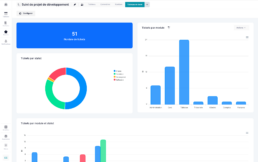 Dans un tableau, vous avez la flexibilité de choisir entre différentes vues : kanban, gantt calendrier, tableau de bord et documents. Vous pouvez également établir des tableaux de bord basés sur les données du tableau pour une analyse approfondie.